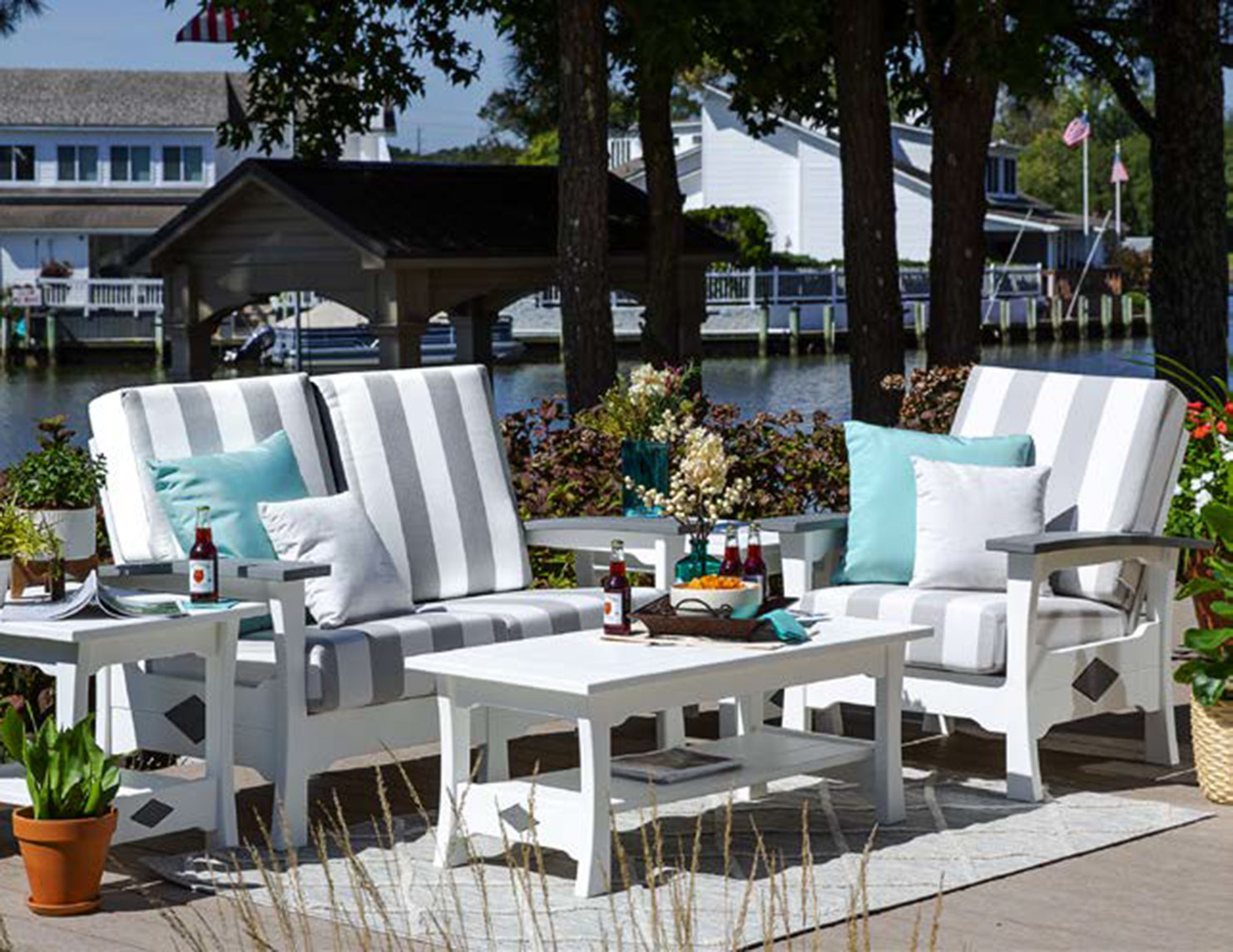 Mission Deep Seating is perfect for outdoors under a pavilion or pergola or even an indoor sunroom or screened in porch.